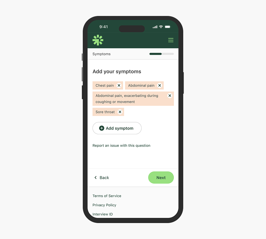 Feeling unwell? Our Symptom Checker can help you understand what your health symptoms mean with our 27/7 AI-driven tool.