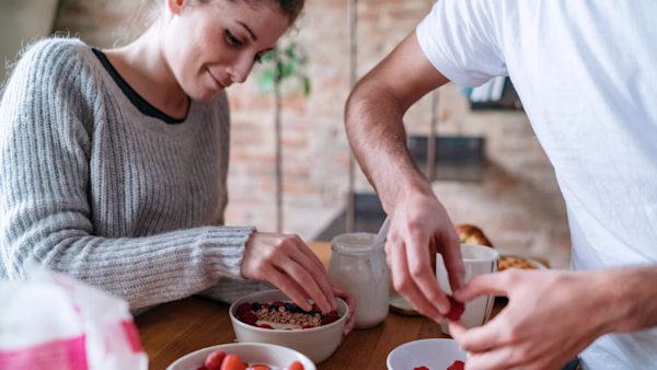 Combine two cups of rolled oats with two grated apples, one cup of apple or orange juice, one cup of Greek yoghurt and a little cinnamon in a container. Mix well, cover and leave in the fridge overnight.